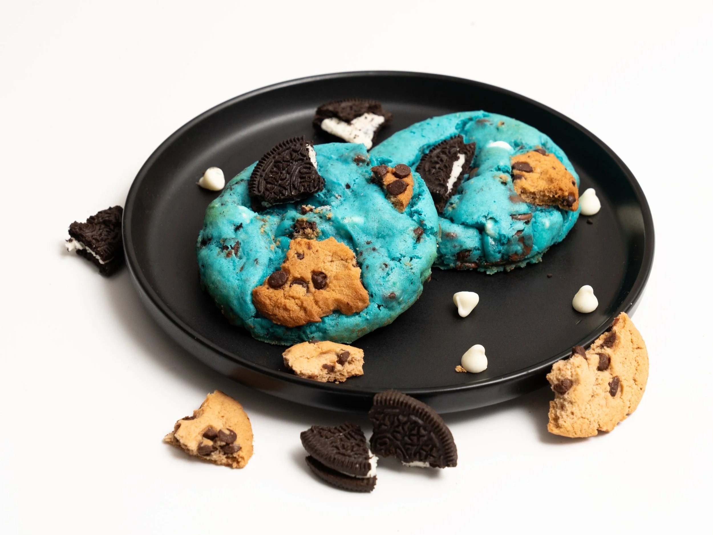 A cookie so good, even the monster himself would go crazy! Packed with crushed Oreos®, crunchy Chips Ahoy®, and melty chocolate chips, this blue-tinted beauty is the ultimate cookie mashup. Soft, sweet, and loaded with cookie-on-cookie goodness!